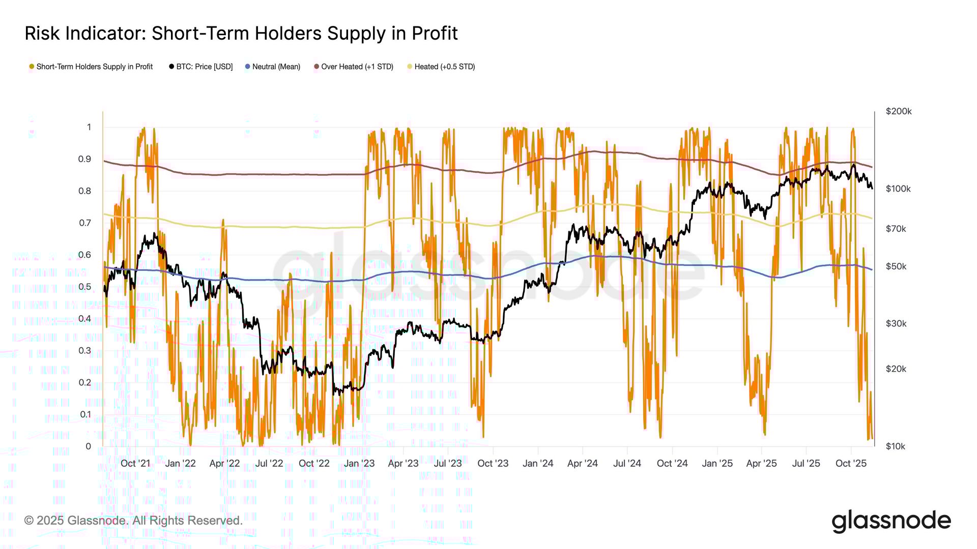 Short-term Bitcoin holders are deep in the red, with roughly 99% of coins acquired within the past five months now below cost basis, a capitulation-level signal historically tied to market bottoms.